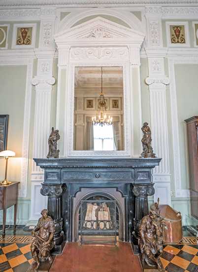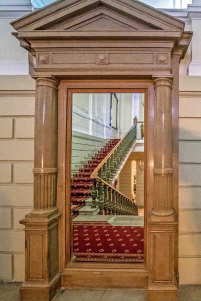 Перед входом в зал, в холле, расположено еще одно старинное зеркало.