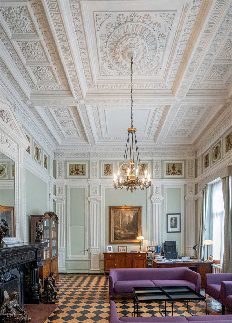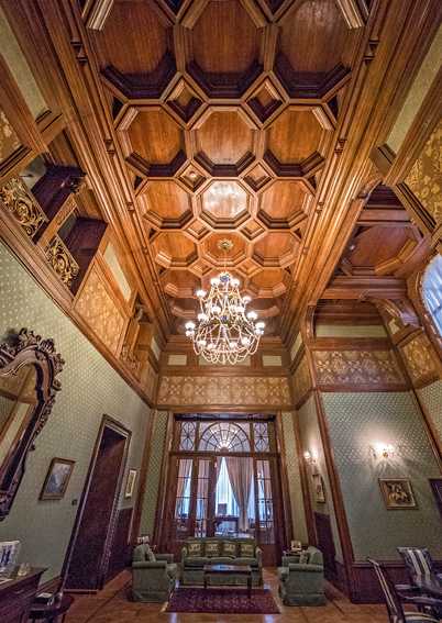 На резных дверях, ведущих в эту гостиную – вензель «ВГ», принадлежащий Варваре Николаевне Грачевой, жене Митрофана Семеновича. В кабинете купца в верхней части стены по всему периметру выполнены живописные вставки с античными узорами. У камина в кабинете примостились бронзовые скульптуры, сохранившиеся со времени Грачева и представляющие собой римских воинов. Еще одно помещение особняка – парадная столовая, в которой был устроен киот для икон.