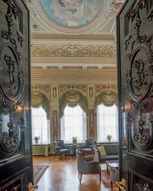 Чуть позже к работе подключился другой архитектор, Георгий Кайзер, который оформил фасад в стиле эклектика с элементами барокко, достроил зимний сад и занялся интерьерами.