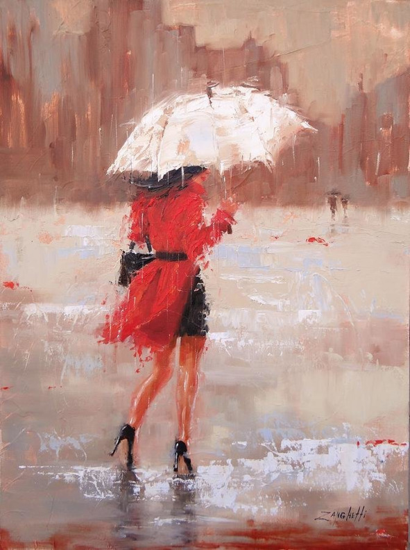 Надев ярко-красный плащ поверх серой водолазки, девушка направилась к остановке, лихо перепрыгивая одну за другой лужи, которые были сегодня на каждом шагу!