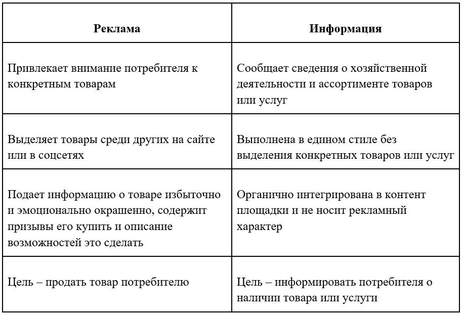 Простыми словами, если есть посыл продать, то это реклама, если нет – не реклама, а информирование.