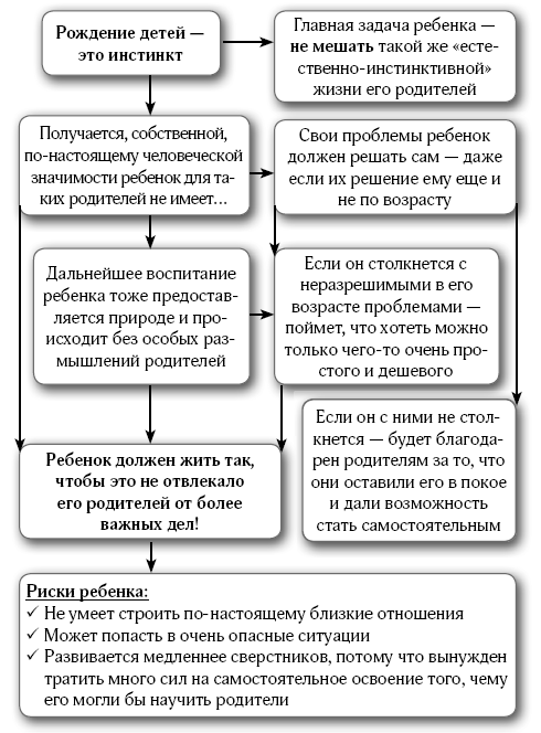 Конечно, на прием к взрослому психологу приходят люди, у которых уже было время самим что-то изменить в своей жизни, сделать для себя то, чего не сделали их родители, восстановить то, что было разрушено в детстве, и переделать то, что было сделано вкривь и вкось. Но то, что все мы родом из детства – со всеми нашими проблемами, страданиями и неумениями, – пока еще никому оспорить не удалось. И взрослый психолог точно так же, как и детский, ежедневно ужасается тому, что творят с собственными детьми самые обычные – на первый взгляд добрые и любящие – родители. Кроме того, пришедшие на прием взрослые частенько уже имеют собственных детей – и делают с ними то же самое! Или собираются детьми обзавестись, не слишком задумываясь о том, что из этого получится…