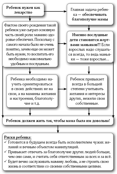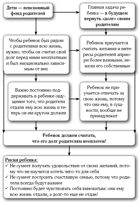 К детскому психологу такие родители обращаются чаще всего в одном-единственном случае – когда ребенок всячески противится выполнению предлагаемых ему обязанностей и никак не желает проникаться столь необходимым родителям чувством вины и долга перед ними. Случается это уже довольно поздно – в начале подросткового возраста. Есть, правда, еще один вариант: родители таких детей обращаются не к детскому психологу, а к взрослому. Происходит это обычно тогда, когда дети уже вырастают – и бросают таких родителей, устав выполнять «священный сыновний» (или «дочерний») долг перед ними…