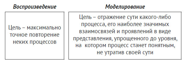 При этом моделированием мы называем процесс, принципиально отличающийся от воспроизведения.