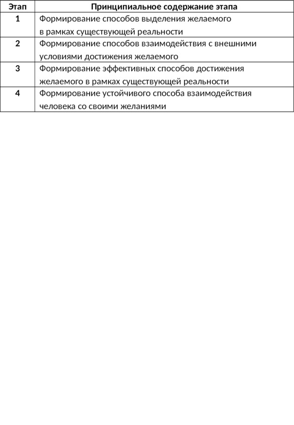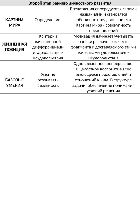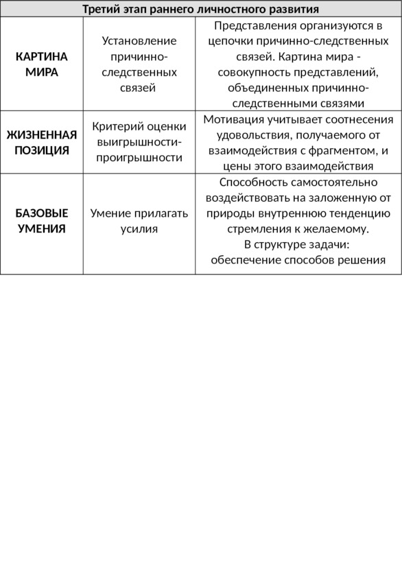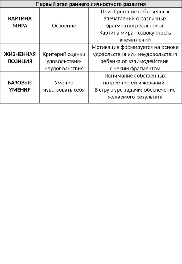 И напоследок – еще одна таблица, на которой показана общую суть всех приобретений каждого этапа раннего личностного развития – просто для удобства практической работы: