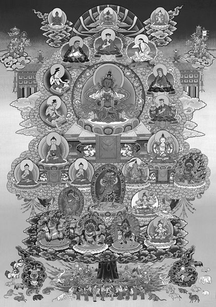 Однако махаянская риторика этого философа, отличавшегося мягкостью и сострадательностью, не произвела на диких кочевников-горцев большого впечатления. Понимая, что его миссия вряд ли будет успешной, Шантаракшита посоветовал Трисонгу Дэцену пригласить другого индийского учителя – тантриста Падмасамбхаву который успел прославиться своими духовными достижениями. Именно сиддхи Падмасамбхавы обеспечили ему всеобщее уважение в Тибете; пошла молва, что, едва перебравшись через Гималаи, он укротил местных демонов, заставив их служить ему и его будущей общине. Тибетцы называют его Гуру Ринпоче, подчеркивая тем самым его индийское происхождение (гуру) и высокий ранг среди тибетских учителей[3]. Во время первого посвящения, которое великий Гуру дал императору и его ближайшему окружению, Трисонг Дэцен поднес ему в числе других даров свою супругу Йеше Цогьял. Она стала ближайшей сподвижницей Гуру Ринпоче и преемницей его традиции. Так возникла старейшая тантрическая школа Тибета – Ньингма, или Ньингмапа). Ее называют традицией тантр раннего перевода; с ней также связано учение Дзогчен, или наивысшей йоги, о быстром обретении Просветления.