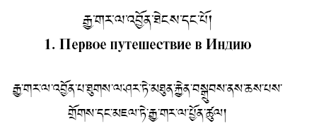 Твое ваджрное тело абсолютно не приемлетусталости.К радости индийских ученых и мастеров,Достигших совершенства,Ты держал линию преемственности.В этой стране заснеженных горных хребтовТы установил знамя победы Учения Шакьямуни.Твоему телу, Марпа-переводчик, я возношу хвалуи кланяюсь.Нектар речи всех Победоносных,Всех слов и их смысла ты выпил до дна,Обретая плод.Твой львиный рык развеял превратные убежденияИ превзошел учения малых Колесниц;Твоей речи, Марпа-переводчик, я возношу хвалуи кланяюсь.Ты постиг сущностную природу и содержание всего,Что можно познать.Ты с любовью заботился о живых существах —Нежнее, чем о самом себе.Светом мудрости и состраданияТы рассеивал мрак в сознании многих.Твоему уму, Марпа-переводчик, я возношу хвалуи кланяюсь.Твое тело излучает безграничное блаженствоИ несет пользу всем.Твоя речь вращает Колесо Дхармы ВеликойКолесницы.Твой ум – обладатель мудрости пяти видов,Творящий два блага.Великий Мастер, Марпа-переводчик,Твоим телу, речи и уму я с почтением возношу хвалуи кланяюсь.Перед главным сыном Победоносных, Марпой ЧёкьиЛодрё,С нерушимым доверием я почтительнопростираюсь.Днем и ночью посредством трех врат и двух фаз2Я посвящаю себя практике на благо другим.С безначальных времен отравленный ядами ума,С великим сожалением и раскаяниемЯ признаюсь в разрушительных действиях моихтрех врат.Ты, святой, преодолевал препятствияИ терпел лишения ради Дхармы.Всем сердцем я радуюсь твоим великим деяниям.Чтобы я созрел, освободил себя и всех существ,Будь добр, вращай Колесо ДхармыДля тех, кто может обуздать себя.Пока все существа не освободятся от страданий,Прошу тебя, защитник Прибежища,Оставаться здесь, не уходить в нирвану.То доброе, что мною сделано, я посвящаюВсем существам, чтобы они могли достичьПросветления.Пусть пожелания Победоносных и их сыновейСбудутся полностью.О великое существо, Марпа-переводчик,Твою жизнь, полную свершений, широкую, как небо,Я кратко опишу в этой истории великолепныхподвиговНа благо всем существам.Ламы-Учители, Йидамы и Дакини-защитницы,прошу вас,Даруйте мне соизволениеИ благословите с любовью.Дабы усмирить всех несведущих существ, высшие Победоносные отправили в мир своего сына сердца – великого Бодхисаттву Всеблагого (Самантабхадра)3. Рожденный в Индии, он был известен как Домби Херука и принес совершенное благо многим существам. После этого он снова принял рождение, чтобы просвещать жителей Страны снегов. Возродившись во славу всех существ в снежном Тибете, он был превосходным Учителем, благодаря которому Учение Будды засияло, как солнце.