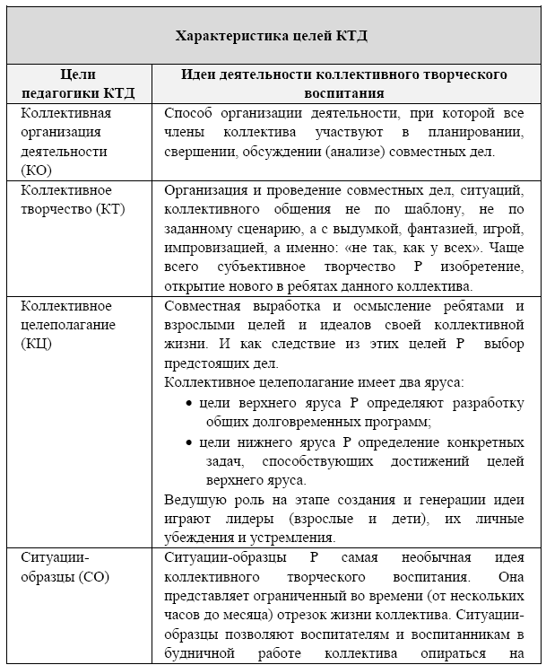 Основным инструментом коммунарской методики является коллективно-творческое дело – КТД, ставящее перед собой следующие важные цели [8, с.76]: