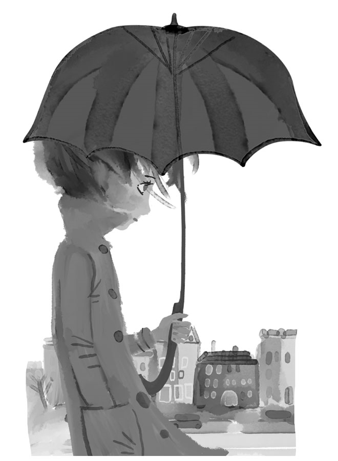 Октябрь – это ее время. Тучи, серое небо, все еще желтые листья! Скоро они побуреют, сольются с грязным тротуаром. Дождь стучит по зонту, заглушая уличные шумы. А внутри, под зонтом, – тишина! Такой тишины не бывает даже в пустой квартире. Там обязательно что-то звякает за окном или бормочет за стенкой у соседей.