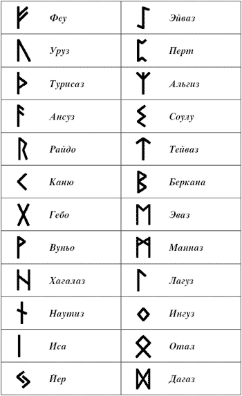 Слово «руна» (от готского – «runa») переводится как «тайное значение», «волшебство». Рунический алфавит, чаще всего используемый для магических обрядов, называется Футарк и делится на три группы по восемь Рун – Фрейи, Хеймдаля и Тюра – с изображениями символов. Каждый из двадцати четырех элементов Футарка имеет свое название, значение и является знаком определенного процесса или ситуации. Двадцать пятая и самая спорная Руна этой магической азбуки – Верд обозначает Судьбу и остается пустой.
