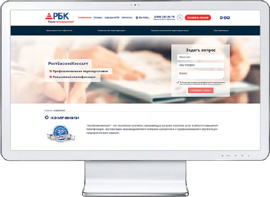 «РОСТБИЗНЕСКОНСАЛТ» – ЭТО РОССИЙСКАЯ КОМПАНИЯ, ОКАЗЫВАЮЩАЯ ШИРОКИЙ КОМПЛЕКС УСЛУГ В ОБЛАСТИ ПОВЫШЕНИЯ КВАЛИФИКАЦИИ, СЕРТИФИКАЦИИ, ПРОИЗВОДСТВЕННОГО КОНТРОЛЯ, КОНСАЛТИНГА И ПРОФЕССИОНАЛЬНОГО ОБУЧЕНИЯ ДЛЯ ПРЕДПРИЯТИЙ ВСЕХ ОТРАСЛЕЙ.