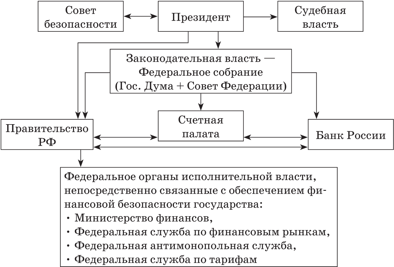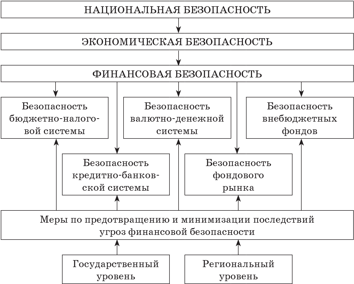 Также подчеркнем, что традиционно обеспечение финансовой безопасности страны является прерогативой государства и входит в круг вопросов государственного финансового регулирования и контроля, включающих как систему органов и специальных структур управления, так и правовую инфраструктуру.