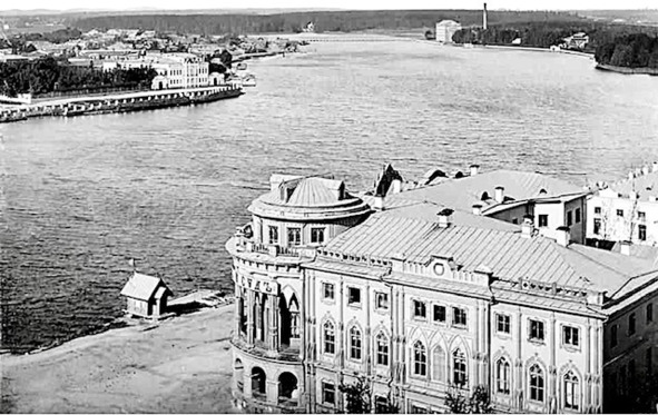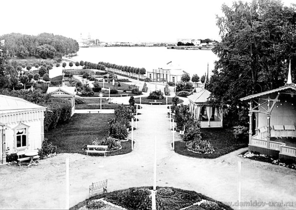 Конец XIX века. Вид из дома резиденции на городской пруд и парк
