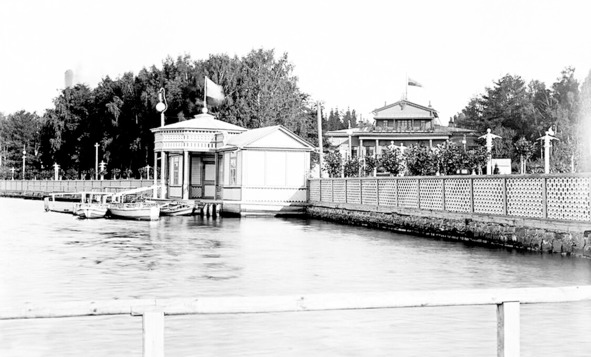 Конец XIX века. Пристань для прогулочных лодок на заднем плане дача