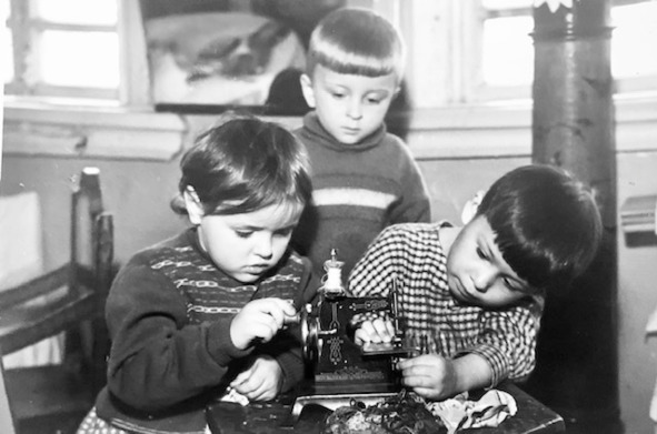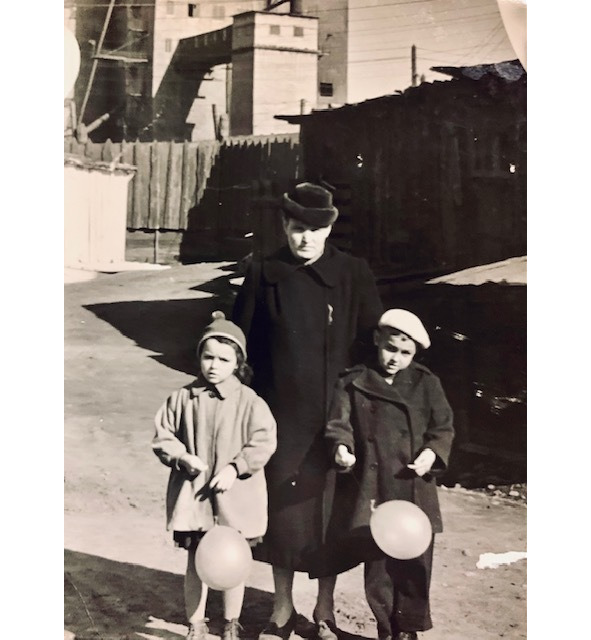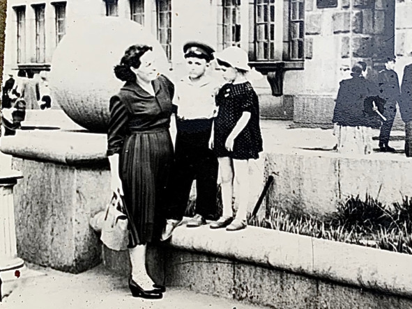 1959 год. Алёнка с мамой и братом во дворе дома на Жданова 23