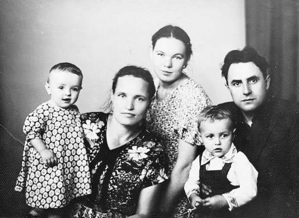 1956 год. Тётя Маша, Алёнка, папа, брат Лёня, мама