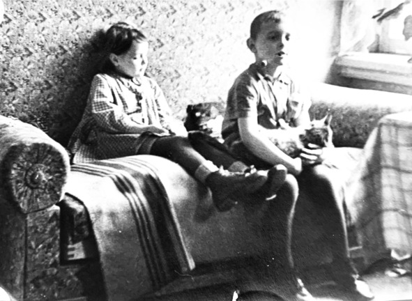 1958 год. Алёнка и Лёня с котёнком Подарком