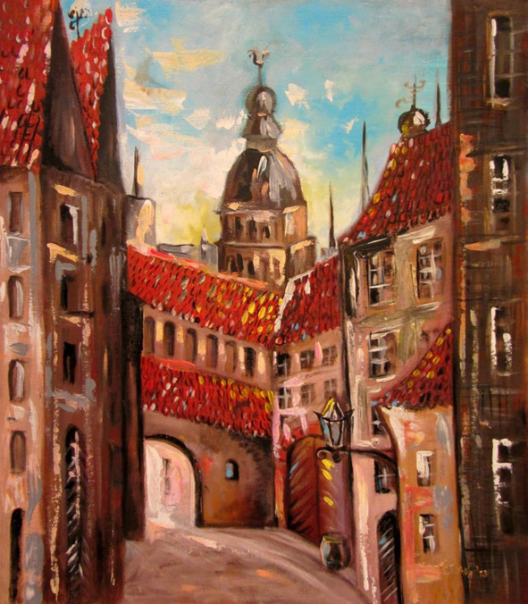 Солнце в Старой Риге (масло, холст, 60x66, 2013)