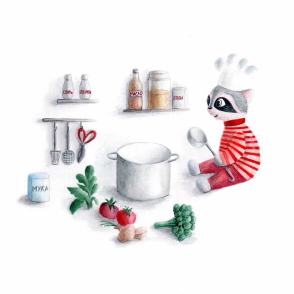 Мы сегодня повара:Повар папа – повар я.Чисто вымыли капусту,Помидоры, лук, шпинат,Все нарезали «соломкой»,И заправили салатМайонезом и сметаной —Ждем на ужин нашу маму.