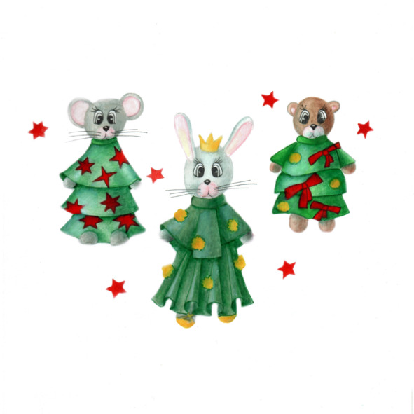 Три ёлочки пушистые,На праздник к нам пришли,Дождинки, бусы, звёздочкиВ косички заплели.Зелёный, пышный, новенький,Игольчатый наряд,Надели наши ёлочки,И мишурой блестят.Волшебницы – кудесницыРоскошно встали в ряд,Огнями разноцветнымиКрасуются, горят.Снежинками присыпали,Припудрили носы,Три ёлочки пушистые,Невиданной красы.А дети удивляются:«Вот чудо! В Новый ГодТри ёлочки пушистыеК ним встали в хоровод!»Смеются звонко, радостно,Играют и поют,Иришка, Оля, Анечка —Так ёлочек зовут.Скажу, ребята, правду я,Здесь чуда вовсе нет,Три ёлочки – три девочки,Вот ёлочный секрет.