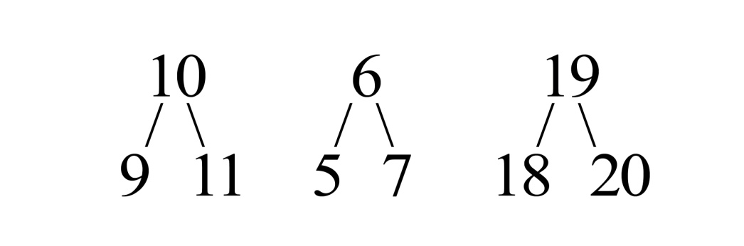 От шестерки влево ставим пять, вправо – семь. От девятнадцати внизу влево пишем – восемнадцать, а справа – двадцать.