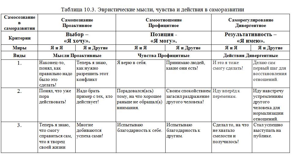 3. Виды мыслей, чувств и действий в динамике саморазвития: проактивные мысли, профицитные чувства и дивергентные действия.