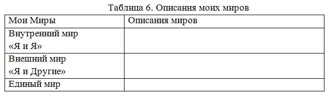 2. Миры личности: Внутренний мир «Я и Я» и Внешний мир «Я и Дру-гие» (в позиции «изнутри наружу») [18].