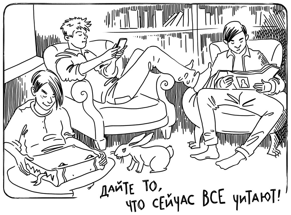Очень тяжко слышать вопрос: «А где книга, которую все читают?», потому что в ответ вопрошающий никогда с первого раза не верит. Если вам задали этот вопрос, поздравляю: сейчас из вас попытаются вынуть душу. Кстати, чаще всего автор вопроса пришел не затем, чтоб купить книгу, – ему нужно посетовать на падение нравов и порчу общественного вкуса. Или есть еще второй путь: вас будут очень долго расспрашивать, как же так получилось, что именно эту книгу сейчас все читают. Если вы попытаетесь объяснить, вас попытаются поймать на вранье и преувеличениях – или опять посетуют на падение нравов и порчу общественного вкуса.