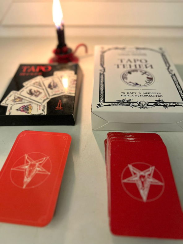 Также отмечу и момент, на который указывала Вера Склярова, говоря о том, что Таро теней раскрывают грани тени карты Дьявол, однако на самом деле практики могут делать ошибку при чтении раскладов, которую сделала и я в начале знакомства с колодой. То есть, когда мы делаем расклад и начинаем повсюду видеть привязки, порчи, окормы, крадники, привидений и прочее. Однако далеко не всегда и не все карты говорят, что «стопудово сглаз имеется!» Поэтому я и написала эту книгу для тех, кто всё-таки решил нырнуть глубже в работе с бытовыми, житейскими вопросами. К слову сказать: если вас, например, интересуют грани карты Смерть, то у Веры Скляровой есть соответствующая колода: Таро чёрных сил (о ней она также упоминала в книге «Путешествие по девяти чёрным туннелям»), которая является второй частью трилогии тёмных иерархий, а третья часть посвящена Таро демонов.