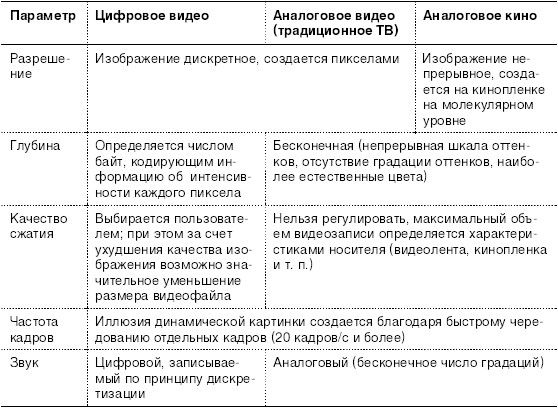 Таблица 1.1. Цифровое и аналоговое видео