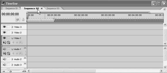 Рис. 2.4. В окне Timeline открыто три фильма (активным является фильм Sequence 02)