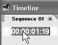 □ активные надписи и регуляторы параметров — характерные элементы интерфейса, применяемые для регулировки различных числовых параметров. Например, одна из таких надписей представляет собой тайм – код текущего кадра в окне Timeline (Монтаж) (рис. 2.10). Числовое значение параметра, представленного активной надписью, как правило, можно изменить непосредственно с клавиатуры, щелкнув предварительно на надписи мышью (рис. 2.11), а перетаскивание линии подчеркивания влево или вправо указателем мыши уменьшает или увеличивает значение параметра соответственно (именно эта ситуация проиллюстрирована рис. 2.10).