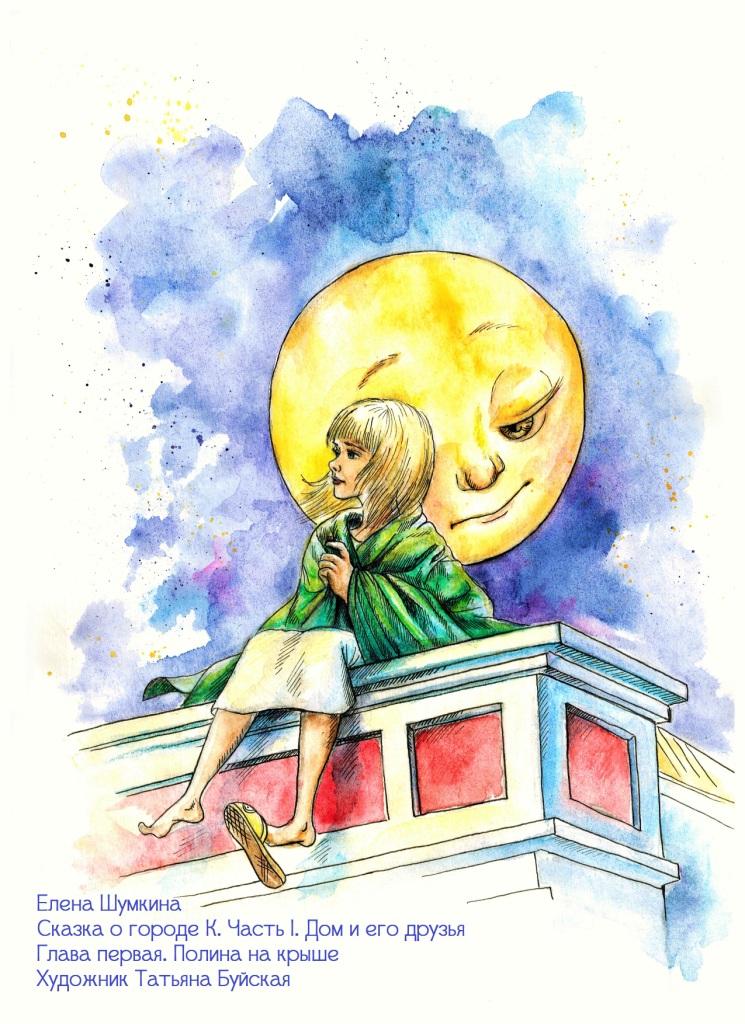 Дом, два его пассажира – домовой и девочка, и тополь отправились в дорогу, а путь им предстоял неблизкий. Домовой сидел на самом верху, на углу, как можно дальше от девочки. А девочка осторожно выглядывала из окна второго этажа, тщательно завёрнутая в одеяло, и дивилась. Иногда Полина словно ёжилась от мерных покачиваний дома, и личико её кривилось от боли. В этот момент у спутников всё сжималось внутри, и желание помочь преодолевало все предстоящие страхи. Пока друзья шли по городу, было не страшно, улицы освещались, дома плавно сходились и расходились, словно в танце, деревья оживлённо болтали. По дороге друзьям даже встретились бронзовые дядя Яша и стажёр10, они, кажется, шли рыбачить. Добрый дом Пахом рассказывал Полине разные истории, чтобы как-то развлечь юную гостью. Девочка смеялась.