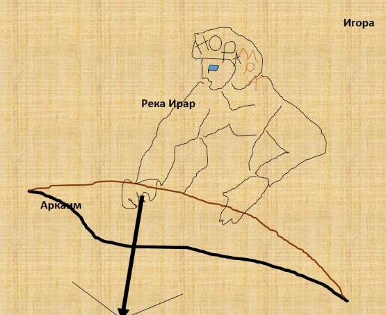 Смотрю на район Аркаима с космоса, вижу «разреженную Амазонку», у которой в руках лук, стрела, сбоку висит колчан со стрелами: