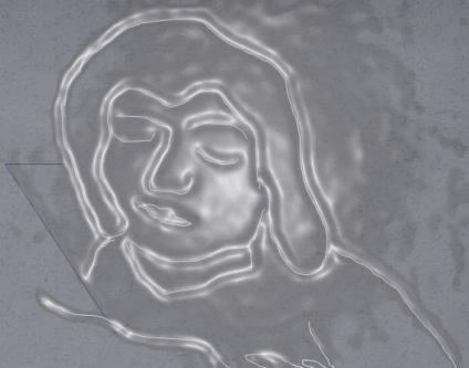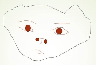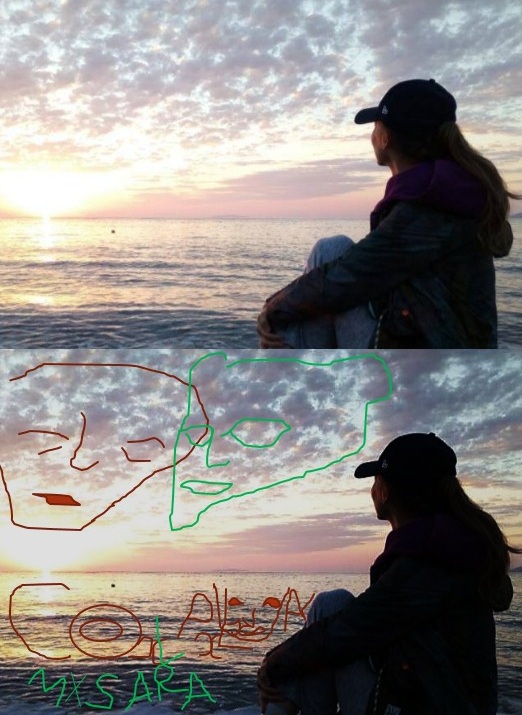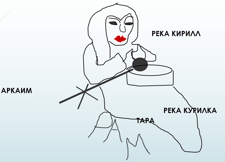 По уровню бровей и глаз чётко видны буквы. Собираю слова: «На Кира мати ара». Смотрим на рельеф около реки Кирилл и видим женщину с пухлыми губами:
