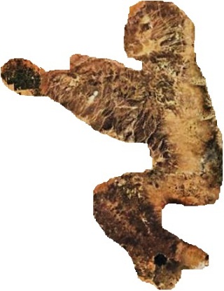 В одной руке у него храм Мары (смерти), в другой – Жива (с руной), то есть, богиня жизни. И находится Жива в созвездии Пса. Пёс упирается мордой в шею Тарзана. Мы знаем Тарзана только по книгам Эдгара Райса Берроуза о человекообразных обезьянах, которые разговаривают на собственном уникальном языке. «В диалекте приматов «тар» означает «белый», а «зан» – «кожа». Соедините два слова вместе и – вуаля! – получите «Тарзан». В книге Кала, приёмная мама-обезьяна Тарзана, называет его именно так – за бледную гладкую кожу» (сайт Мир путешествий, «10 неожиданных фактов о Тарзане»). Цитирую далее: «Однако это имя пришло Берроузу на ум не с бухты-барахты. В 1910 году, живя в Чикаго, он влюбился в южно-калифорнийскую общину Тарзану и даже приобрёл там землю. Спустя несколько лет писатель задумался об имени для мальчика, выращенного обезьянами, и вспомнил о Тарзане. Берроуз убрал последнюю гласную, и легенда родилась… вырастили Тарзана обезьяны, неизвестные науке. Силой и размерами они напоминают горилл, но в других отношениях отличаются. Эти приматы ходят в основном прямо, охотятся на зверей, едят мясо и используют разговорную речь. Сами себя они зовут «мангани». Берроуз описывает их «громадными», «свирепыми» и «ужасными». Он добавляет, что «они – близкие родственники горилл, однако умнее их». Благодаря своим уму и силе мангани – «самые устрашающие из всех человеческих пращуров». Скорее всего, автор книг был наслышан о местных легендах о происхождении человечества, что дало ему материал для книг. Проверяю наличие селения Тарзану, он есть в Калифорнии! И на рельефе выбито изображение беременной человекоподобной женщины с ребёнком внутри (она тоже уже была найдена по текстам на скалах!):