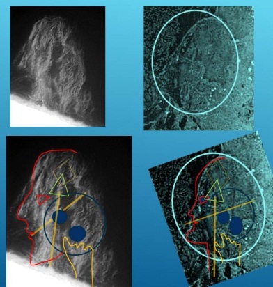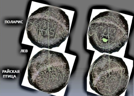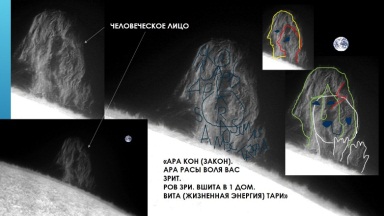 Кроме лица Иштар и её руки у рта, совпадают круги, линии, мужской профиль и единицы ото лба «мати» к её носу. Ромб на лбу матери ариев означает созвездие Медведицы. Стрелка показывает направление на Полярную звезду, другая линия говорит о смещении северного полюса. Вот такое послание от Солнца, совпадающее с посланиями на камнях и рельефе Земли, с ченнелингом от Основателей, я сняла с эфирного поля Земли и в космосе. И это может прочитать каждый, используя русские и латинские буквы. Ченнелинг Крайона подтверждается: создатели Земли и человечества существуют!