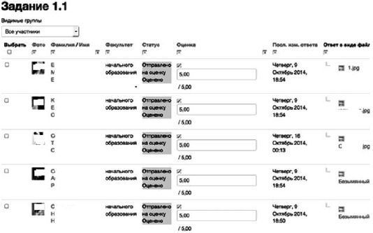 Рис. 8. Отчет о выполнении задания студентами