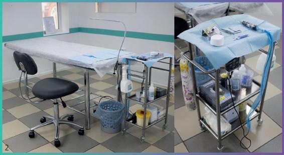 Вы должны подготовиться к процедуре так, чтобы со своего рабочего места больше не вставать после начала работы. В зоне досягаемости должны быть инструменты и материалы, которые могут пригодиться, а на рабочем столике – пигменты, анестезия, ватные палочки, ватные диски и машинка.