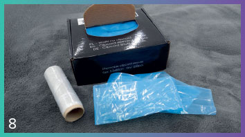 Все одноразовые расходники должны открываться при клиенте. Так же при нем застилайте кушетку одноразовой простыней. Подготовьте для клиента шапочку и постелите под голову ламинированную салфетку. Салфетка защитит кушетку от загрязнения пигментом (фото 2).