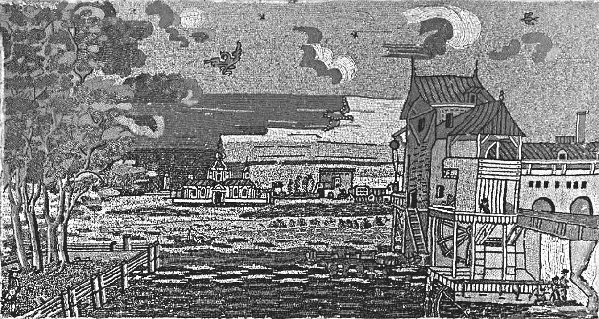 Для строительства фабрики в Усть-Рудице были организованы кирпичный завод и лесопильная мельница. На мельнице располагались три водяных колеса, одно из них пилило бревна, второе предназначалось для шлифовки стекла, на третьем мололи муку для фабричных рабочих. Вскоре на берегах Рудицы вырос маленький городок, где жили рабочие фабрики. Рядом находилась усадьба, где жил Ломоносов со своей семьей: одноэтажный дом с мезонином и двумя флигелями – над одним возвышалась «самопишущая обсерватория», то есть метеорологическая станция для наблюдений за погодой и исследований атмосферного электричества. К дому примыкали прямоугольный участок регулярного сада и огорода, поварня, людская, черная изба, погреб, баня, хлев, конюшни.