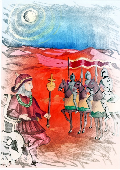 Призвал тогда царь советников да звездочетов. Так, мол, и так.… Задумал я царство младшему сыну оставить, только надобно чтобы он, знаний да мудрости набрался, что б доказал, что править сможет, по совести.