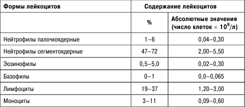 Лейкоцитарная формула, или лейкограмма, – это соотношение в периферической крови различных форм лейкоцитов, выраженное в процентах. Нормальные показатели лейкограммы приведены в табл. 1.
