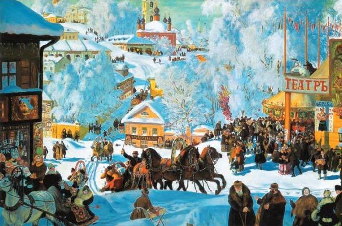 Среди праздников, зависящих от даты Пасхи, особое место занимает Масленица, поскольку она удивительным образом сочетает в себе традиции народных гуляний с православной духовной сущностью. Этот исконно русский праздник достался нам в наследство от славянской языческой культуры. Для наших предков это были веселые проводы зимы, озаренные радостным ожиданием близкого тепла, весеннего обновления природы. Долгое время масленица была еще и встречей нового года, ведь до XIV века год на Руси начинался с марта. Некоторые историки считают, что в древности масленица была связана с днем весеннего солнцеворота. Но с принятием христианства она стала предварять Великий пост и зависеть от его сроков. Великий пост для православных – время покаяния перед Пасхой, и готовиться к нему начинают заблаговременно. Масленичная неделя тоже является подготовкой к посту, она еще называется мясопустной, поскольку во время нее уже не едят ничего мясного. Зато вдоволь едят все остальное – обильное и разнообразное застолье является непременным атрибутом праздника, главным угощением которого являются, конечно, блины. Целую неделю народ без устали поглощает их, ходит друг к другу в гости и предается зимним забавам с песнями, плясками, играми и катанием на санях. Ведь потом долгих семь недель нельзя будет веселиться, плясать и смеяться, очищаясь от грехов воздержанием.