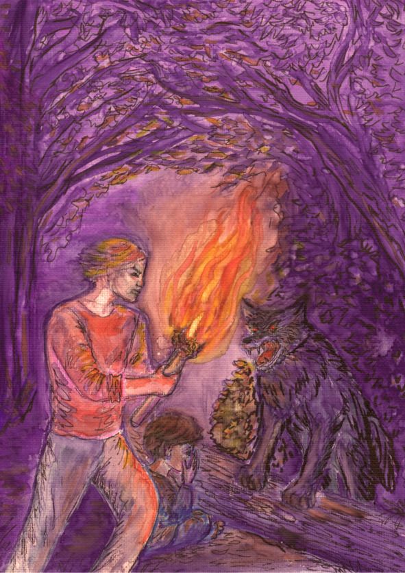 Вильгельм тоже испугался, но отступать было некуда, малыша надо было спасать, даже ценой собственной жизни. Он собрался, крепче сжал кулаки, громко закричал и побежал на волка, размахивая факелом перед собой. От неожиданности и дерзкого натиска зверь отступил, а Вильгельм быстро схватил Томаса и, не оглядываясь, побежал в замок что было сил.