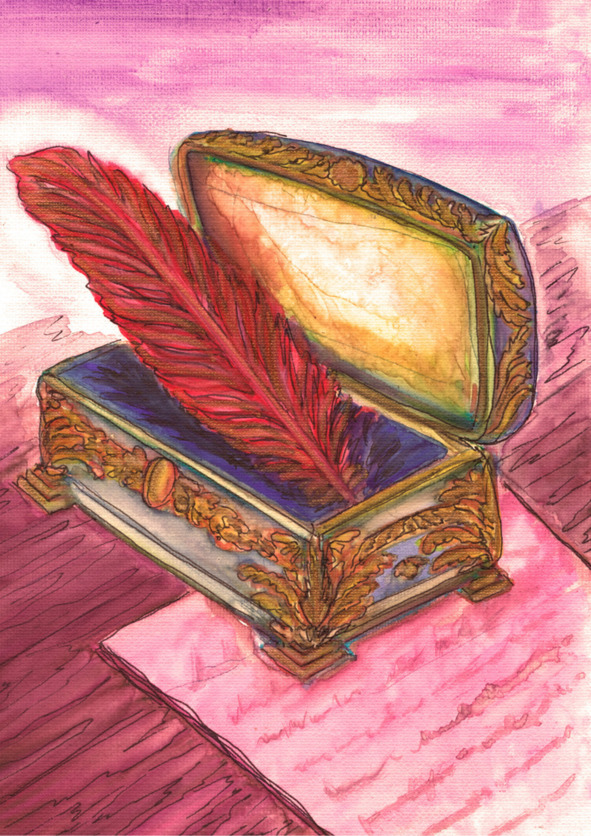 Проснувшись утром, вся семья спустилась в гостиную, и стала с любопытством их распаковывать. И каково же было удивление Вильгельма, когда в красивой шкатулке он обнаружил перо.
