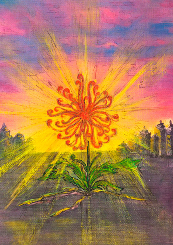Так и пошло: зелёная штука росла и росла, а мальчик каждое утро докрашивал то, что появилось. Она становилась красивой. Отростки по бокам распустились и стали широкими и резными, а на макушке появился шарик. Через несколько дней шарик раскрылся, и оттуда показались тоненькие беленькие листики, как бумажные, только в несколько раз нежнее и красивее. А ещё он источал нежный аромат!