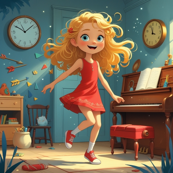 Аля вздохнула и отскочила от сестренки. Она никак не могла усидеть на месте! Сначала Аля стала пинать мячик, потом побренчала по клавишам пианино.