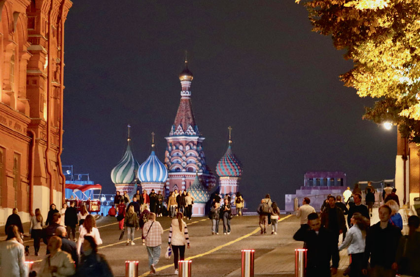 Вид с Кремлевского проезда на Покровский собор, он же собор Василия Блаженного