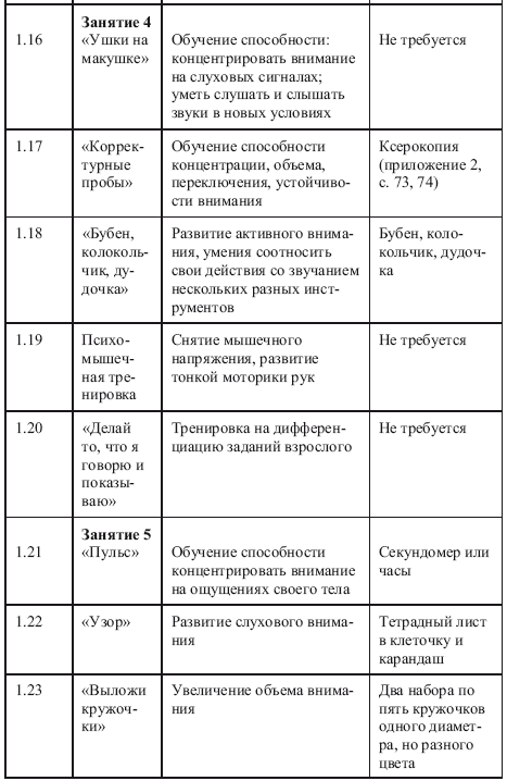 Цель: обучение способности концентрации, объема, переключения, устойчивости внимания.